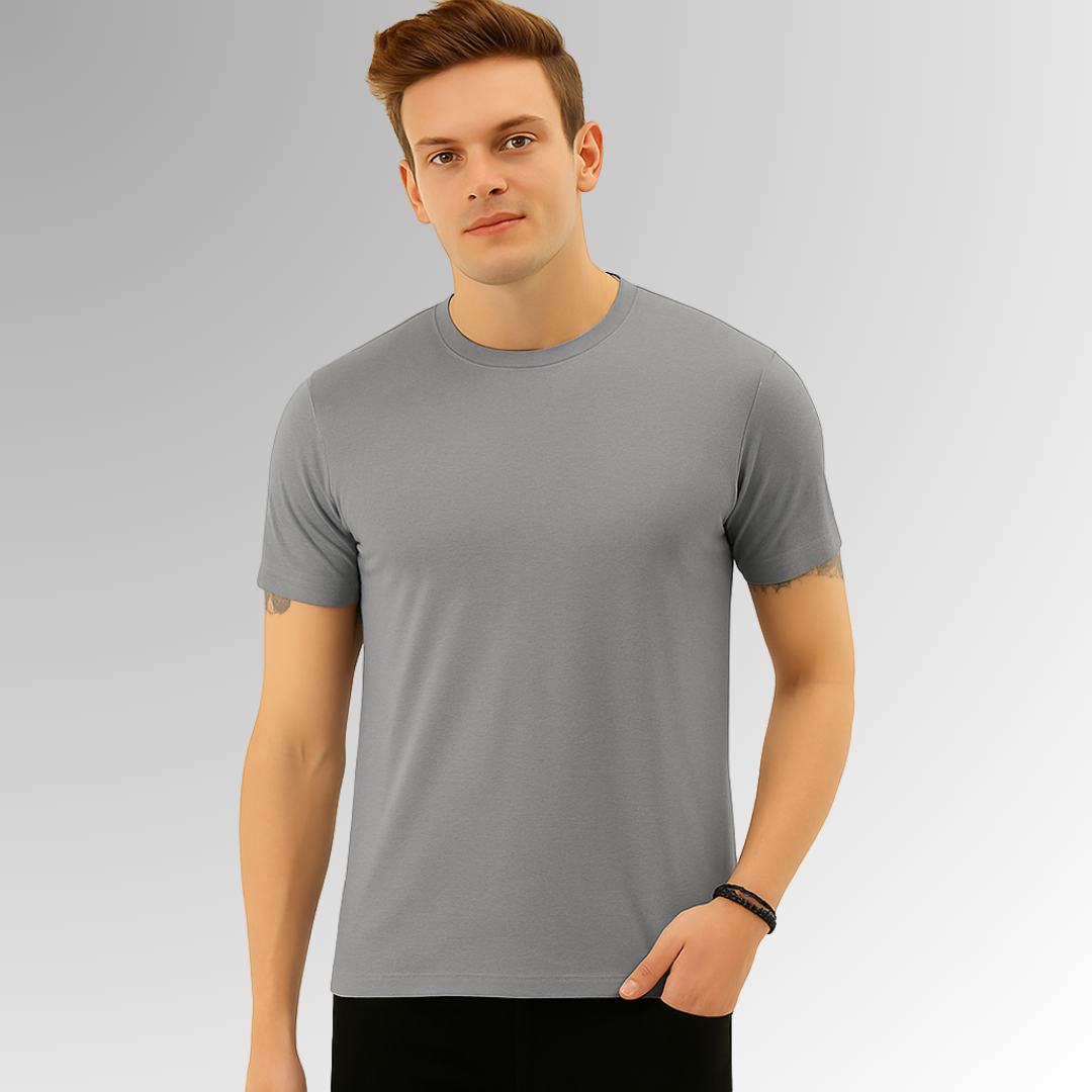 Transform your daily wardrobe with the Simple & Sleek grey Half Sleeve tee. Made from...